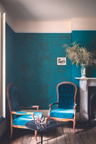 Five patterns uncovered at Château de Purnon and brought to life by Farrow & Ball — these are The Purnon Papers. Inspired by those who lived, and revelled, at the French château in its heyday, the original patterns have been lovingly redesigned in five unique colourways to complement homes of all shapes and sizes. Each roll is handcrafted in signature Farrow & Ball fashion, using traditional techniques, the finest paper and our very own paint.