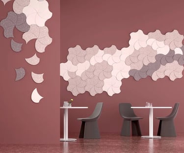 This collection features natural, sustainable cork in organic blocks and panels that add texture and acoustic benefits to walls. It combines the organic feel of cork with modern design aesthetics, including metallic finishes.